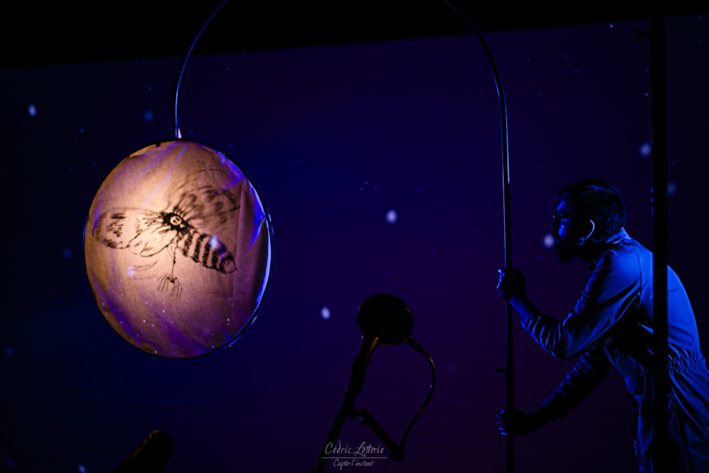 Un monde à hauteur d’insectes raconté par la magie et la poésie des jeux d’optique du 19e siècle tel le Praxinoscope, le Zootrope ou la lanterne magique, conjugués avec les nouvelles technologies du vidéo-mapping.
